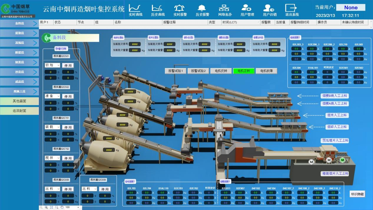 ▍项目背景 随着烟草行业对生产智能化与精细化管控需求的持续升级,我司基于工业互联网平台与智能控制技术,为某大型烟草集团打造全厂级中央集中控制系统。该系统通过构建覆盖原料处理、制浆成型、干燥分切等全工艺链的数字化管控体系,实现跨工序数据互联互通、工艺参数动态优化与生产资源模块化调度,助力客户达成生产协同效率提升、质量精准控制与管理决策科学化的核心目标。 ▍建设原则 本项目系统总体设计须综合考虑系统的先进性、兼容性、稳定可靠性、安全性、可扩展性、实用性、易维护性、标准化、模块化、参数化和智能化。要充分考虑设备自动控制和工厂管理的需要,实现对设备和生产工艺的有效控制,同时又要根据工艺加工的要求在设备过程控制方面做到精细化、智能化、参数化、模块化的控制。 ▍建设目标 本项目将建设全厂生产线中央集中控制系统,系统采用以太网混合型网络拓扑结构网联各工艺段DCS/PLC控制系统(其控制层建设不在本项目内),生产主干网络通过干网交换机组成冗余1000Mbit/S光纤环网;服务器采用冗余结构配置。各控制系统间采用工业以太网通讯。要求在中心控制室对应监控计算机上均可方便操作控制各对应区间的工艺生产,且能方便地查看各自区域内的生产工艺质量以及任意一台设备的参数、设备状态、报警、事件、趋势图、实时及历史数据等,并可输出打印相关信息。通过工程师站可方便的对整个系统进行维护与管理;还可通过互联网从系统供货方的服务中心对系统进行远程在线诊断,协助用户进行故障排除。 将在中心控制室布置LCD拼接大屏系统及调度台、操作台、相关服务器、工程师站、各工艺段集控操作站、生产视频监控操作站及网络通讯系统等。可上屏显示全部工艺生产流程、相关数据和生产视频监控信息等。 本项目将建设集成监控系统、配方和参数管理系统等,完成对生产线的系统控制与监控、工艺与配方管理等任务;建设系统自身安全防护、用户与日志管理系统等,并完成系统自身的管理与维护任务。 ▍建设内容 ▶硬件服务器: 冗余SCADA服务器(标准2U服务器,国产品牌,自主研发,非OEM,适用于通用机房环境,支持标准机柜; 处理器:配置1颗Intel Xeon 3206R (8C,85W,1.9GHz) ;支持最高205W处理器;)、实时历史数据库服务器(标准2U服务器,非OEM,适用于通用机房环境,支持标准机柜;)、Web应用服务器(标准2U服务器,非OEM,适用于通用机房环境,支持标准机柜)、工程师站、操作员站、监控服务器。 ▶大屏显示系统: 55寸拼接屏、拼接控制器、LED双色条屏(Ø3.75室内双色;点中心距:4.75mm; 物理密度:44321/㎡;;最佳视距:5~100m;最佳视角:水平140度,垂直110度;最大功耗:≤450W/㎡;屏体重量:≤30KG/㎡;驱动方式:1/16;刷新速率:≥360帧/S;亮度调节 每色256级亮度等级,非线性纠偏文字;平均无故障时间:≥10000小时;理论寿命:10万小时。尺寸:7.296*0.308)、LED屏框架、双色屏控制系统、屏体框架结构、HDMI线、网络跳线、控制台、UPS备电。 ▶集中控制软件 SCADA开发版(大画面和无极缩放、支持大画面应达到32000*32000分辨率、画图工具和精灵图库、工程管理、数据模型和图形模型、脚本语言和变量、查找定位)、SCADA运行版( 大画面和无极缩放、画面全集成、冗余功能、趋势曲线、报警功能、报表功能、历史数据记录、用户安全、分布式系统架构、开放性接口)、工业历史数据库(性能要求、功能要求、售后服务)、Ioserver组件、Web客户端(组态软件需具备web发布功能,利用web功能将监控组态画面进行发布,从而使管理层的计算机在不需要额外安装软件的情况下,使用IE浏览器即可查看到全厂现场运行的画面,进行数据的监视、报警查看、报表查询等功能。IE客户端需要获得与组态软件运行系统相同的监控画面,IE客户端和WEB发布服务器保持高效的数据同步,通过网络用户能够在任何地方获得与在WEB服务器上一样的画面和数据显示、报警显示、趋势曲线显示等,以及方便快捷的控制功能。)、数字物联播控系统。 ▶网络交换设备等 干网交换机(中控)、干网交换机(现场)、交换机24V电源、光模块、弱电柜、配电柜。 ▶网络安全系统 网管平台软件、授权。 ▶系统开发调试 需求调研确认(调研各控制系统的人机交换接口数量、全厂生产整线的集中控制操作、状态监视、生产工艺数据采集、配方管理)、系统设计(设计各控制系统的人机交换接口,实现全厂生产整线的集中控制操作、状态监视、生产工艺数据采集、配方管理、报警提醒及故障显示、历史记录及预览调阅、实时数据C/S应用和B/S发布以及制作报表等功能;进行系统自身安全防护、用户与日志管理,并完成系统自身的管理与维护任务等)、设备数据整理配置、中控画面开发(按照业主提供各生产线或成套设备 PLC、DCS上位机软件界面与控制流程,以及需要监控的模拟量和数字量的变量名称和相应地址,完成集控中心上位机软件开发、流程画面组态。最终集成实现业主全厂生产线中央集中控制系统的目标。建立工厂生产线的设备和生产、工艺等模型,基于数字化工厂模型实现生产线的生产过程监视、趋势分析、历史回放、性能计算、生产看板分析、设备状态监测、报警管理,指标管理等功能。实现全厂生产整线的集中控制操作、状态监视、生产工艺数据采集、配方管理、报