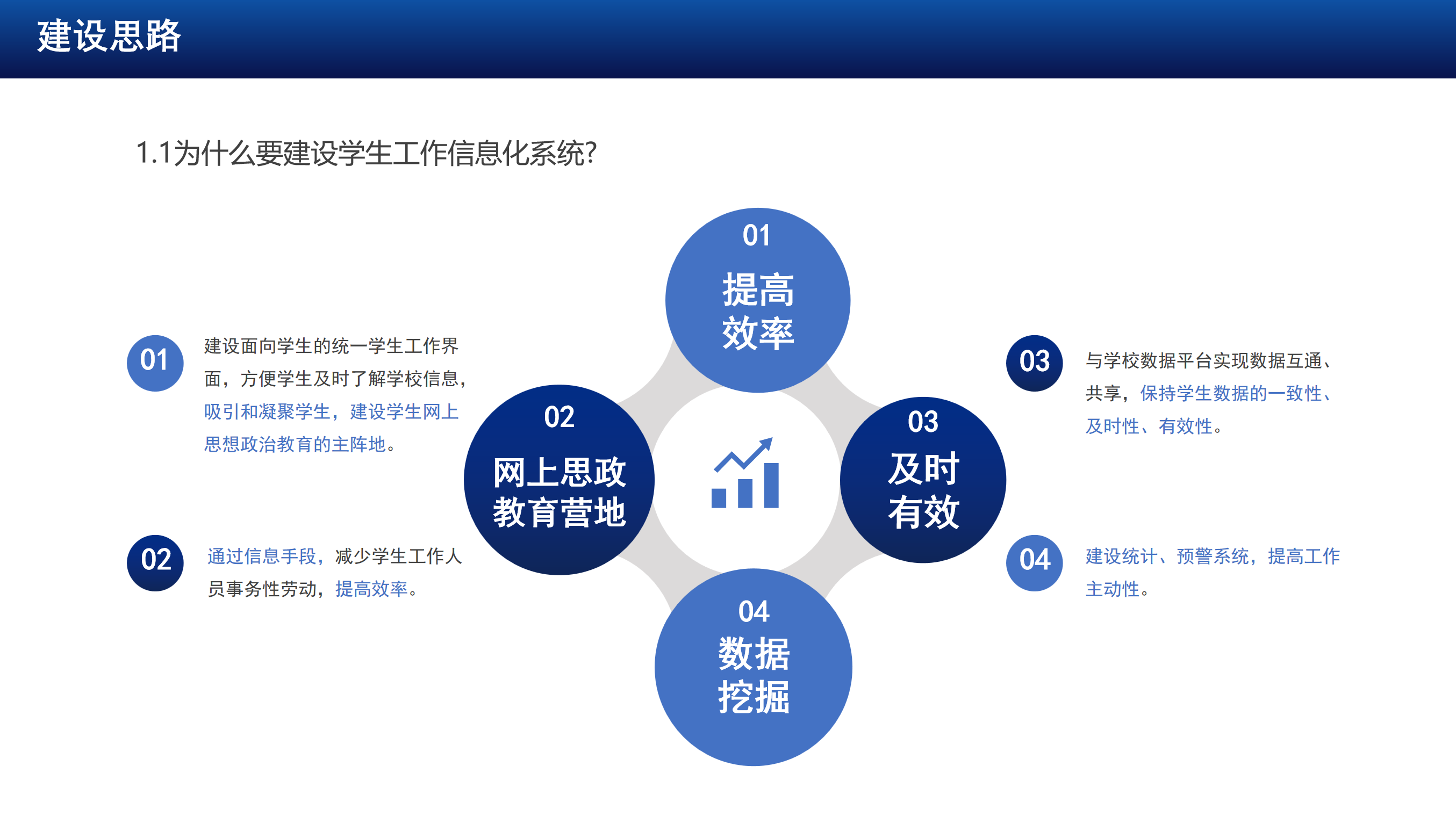 以“以学生为中心,以数据为驱动,以服务为导向”为核心理念,构建覆盖学生“入学 - 在校 - 毕业”全生命周期的数字化管理生态。